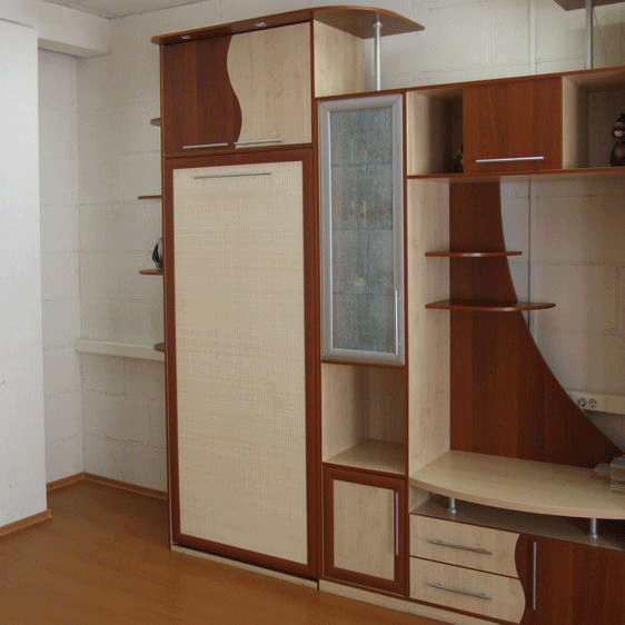 Мебельные стенки и шкафы купе на заказ, с откидывающимися кроватями, позволяют в единой конструкции совместить кровать, шкафы и антресоли для одежды, прикроватные тумбы, комоды,компьютерные столы. Откидывающиеся кровать с комплектом мебели подходят для детских, спален, гостиных, библиотек.